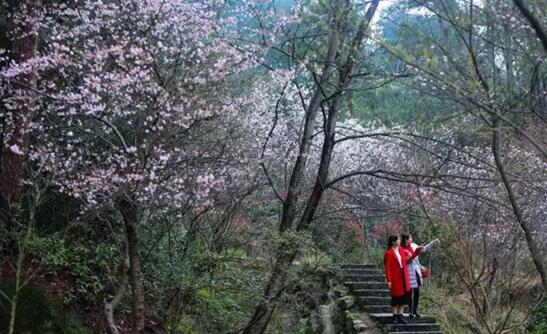 【香港商報網訊】實習記者鄒子聰 通訊員康松柏報道:陽春三月,煙雨蒙蒙,南嶽衡山的櫻花競相開放,粉白的、紫紅的。一樹樹,一簇簇,拉開了南嶽衡山春賞花的序幕。