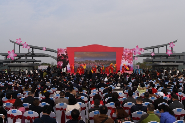 开幕式上,南京林业大学副校长薛建辉,对首届眉山樱花盛会的举办表示诚挚的祝贺,并为岷东新区“樱花研究所天府基地”授牌。他在致辞中指出,樱花类植物起源于北半球温带喜玛拉雅山地区,我国有野生樱花60多种,是全世界野生樱花品种最丰富的国家。在西部城市中,眉山交通便利、环境优美、文化底蕴深厚,气候条件非常适宜樱花生长。南京林业大学学术实力雄厚,致力于国产樱属种质资源创新研究20余年,积累了丰厚的科研成果。本次与眉山市合作,将发挥眉山丰富的樱花资源优势,结合眉山独特的人文、自然特征,在眉山建设产学研结合的樱花综合产业示范区,为眉山建设“中国樱花第一城”提供强大的技术支撑!