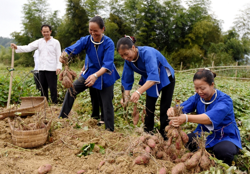 村民在收获优质红薯。