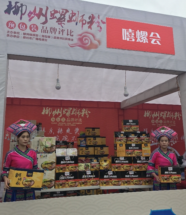 柳州袋裝螺螄粉進行展銷,通過電商平台日銷4萬袋。