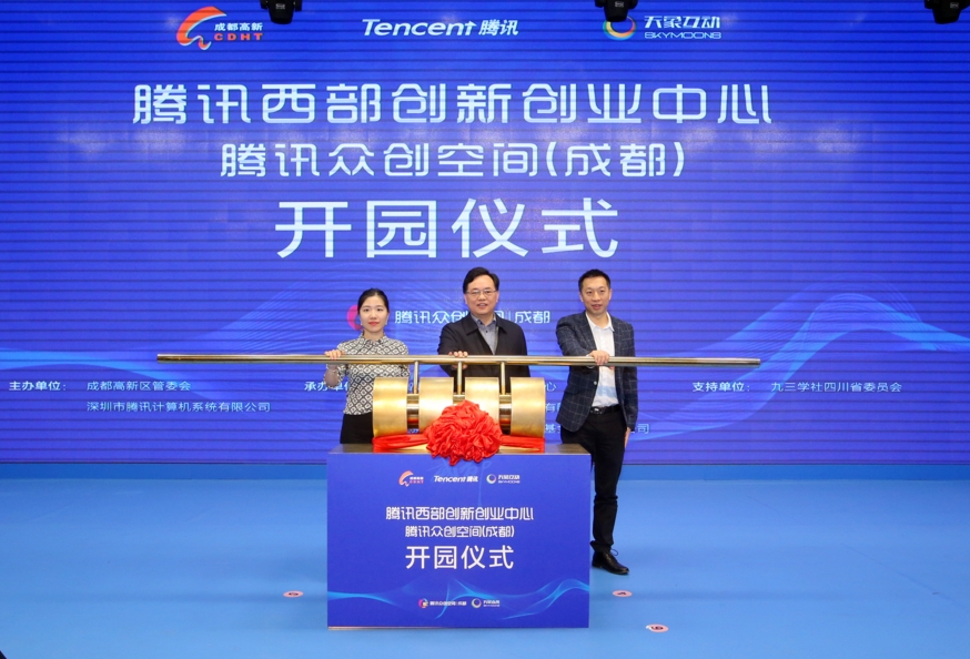 活動當天,除了騰訊西部創新創業中心開園儀式,九三學社四川省直工委創新中心落戶騰訊西部創新創業中心的揭牌儀式也在此舉行。