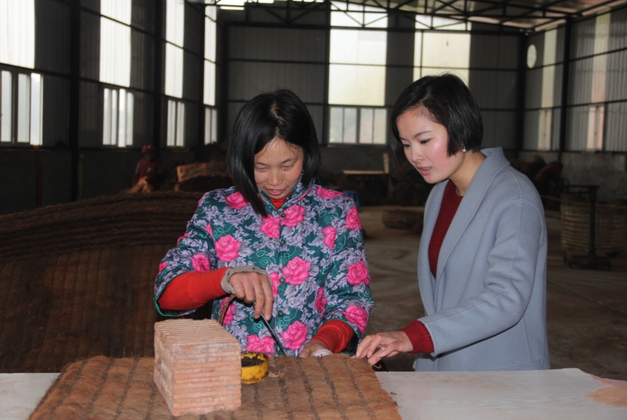王英2011年从职业学院毕业后,优秀干练的她在一次应聘中获得大城市的一家设计公司赏识,被聘为设计助理,这在别人看来很羡慕的事,随着时间的推移,却逐渐让王英感到厌倦。城市的繁华和农村的荒僻令她既矛盾又难以释怀,“那么多人在城市务工,但过年时基本都要回老家去,城市建设得再好,大都没有归属感,家乡才是自己的牵挂。如果家乡的产业发展起来、基础设施建好,大家没有必要背井离乡。只有家乡建设好了才能有更多归属感、获得感、幸福感。”这种的想法坚定了王英回乡创业的信心。2015年怀揣创业梦的她,果断回到家乡,继承起祖父辈多年来从事的山棕产业,立志用自己的聪明才智和勤劳的双手将山棕产业做好。