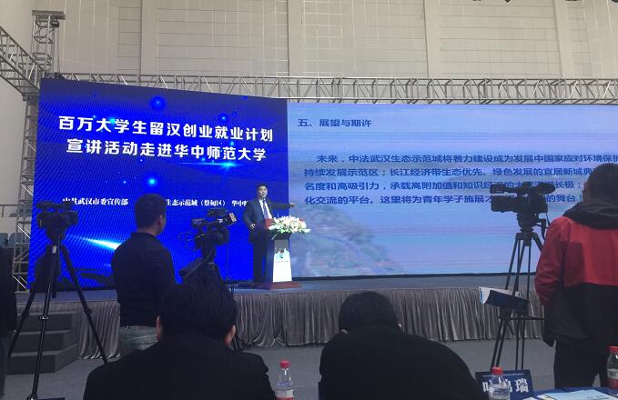 同為華中師范大學畢業的湖北省武漢市委常委、宣傳部部長李述永在會上向同校的學弟學妹們介紹了政府對“百萬大學生留漢創業就業計劃”的大力支持,並誠邀華中師范大學學子及廣大大學生與蔡甸合夥,在漢圓夢。