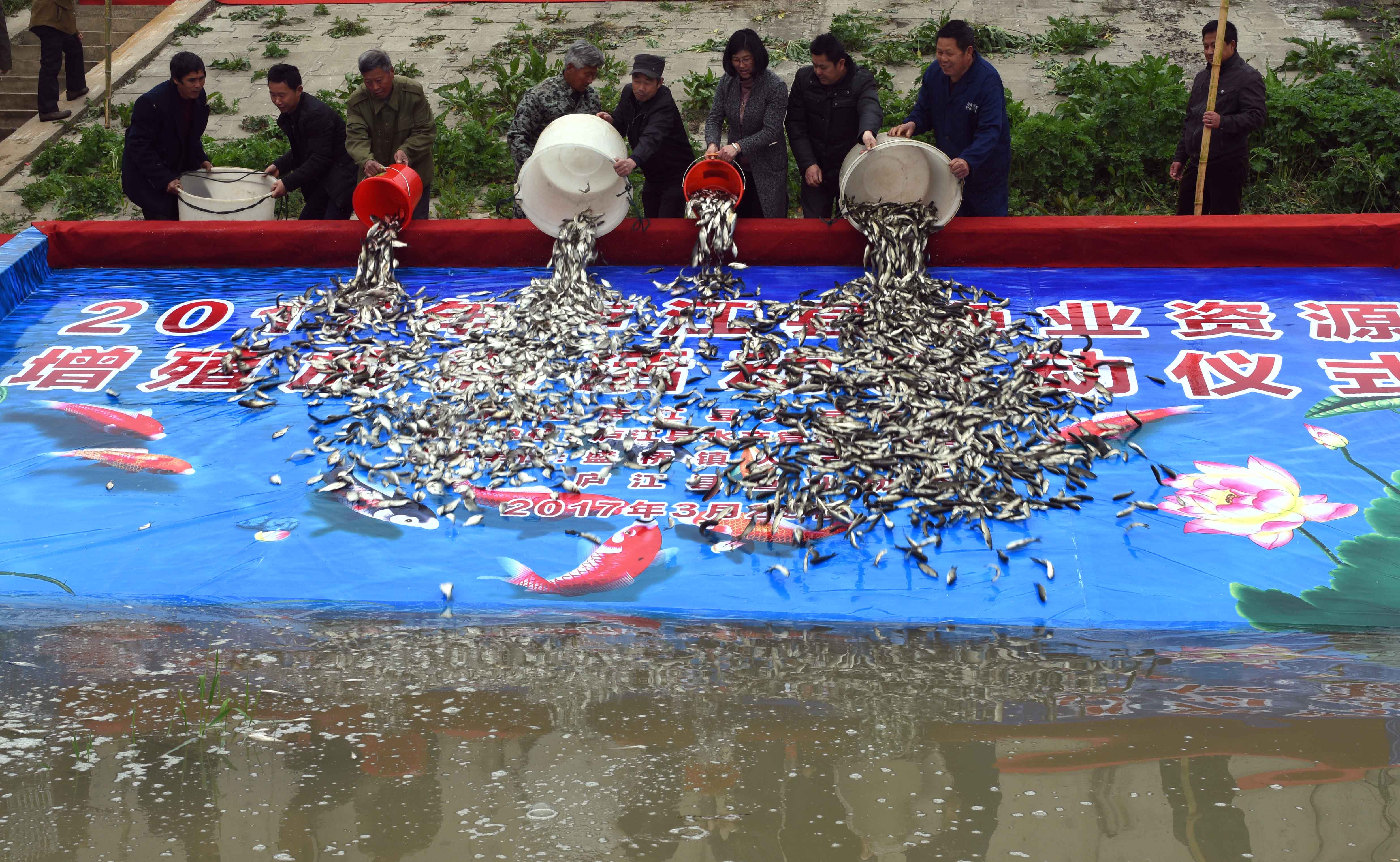 【香港商報網訊】通訊員 周躍東 梁如攝影報道:3月29日,2017年安徽省廬江縣漁業增殖放流活動在盛橋鎮馬尾河啟動,25萬尾鰱魚、鱅魚、草魚、鯿魚等魚苗相繼“遊”進巢湖流域的馬尾河,這是該縣連續第六年在白石天河、兆河、馬尾河等大型天然水域實施人工增殖放流魚苗1000多萬尾,並對巢湖流域部分天然水域實施了半年的禁漁期制度,使漁業資源修複狀況良好,水域生態、水生生物環境得到修複和保護。