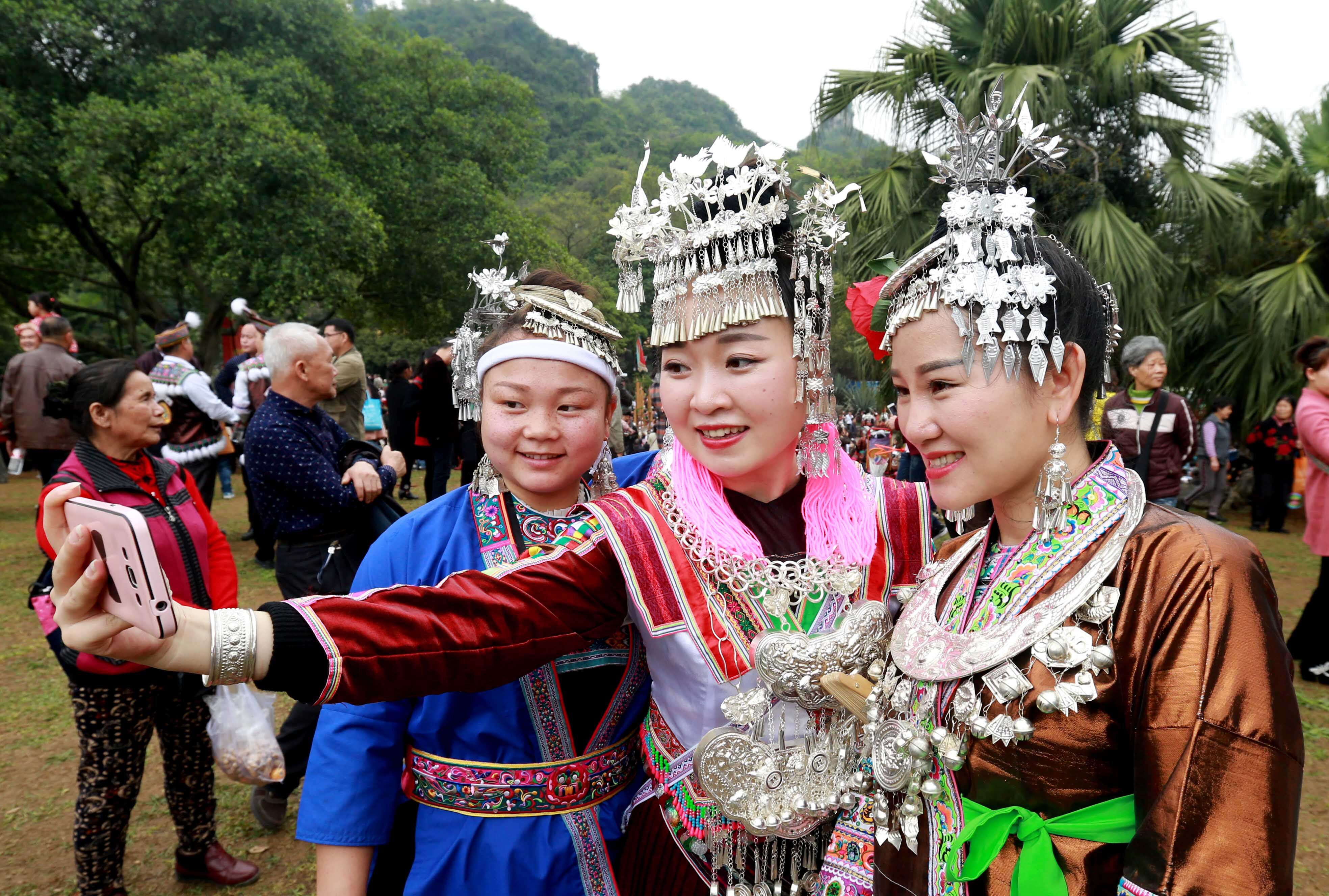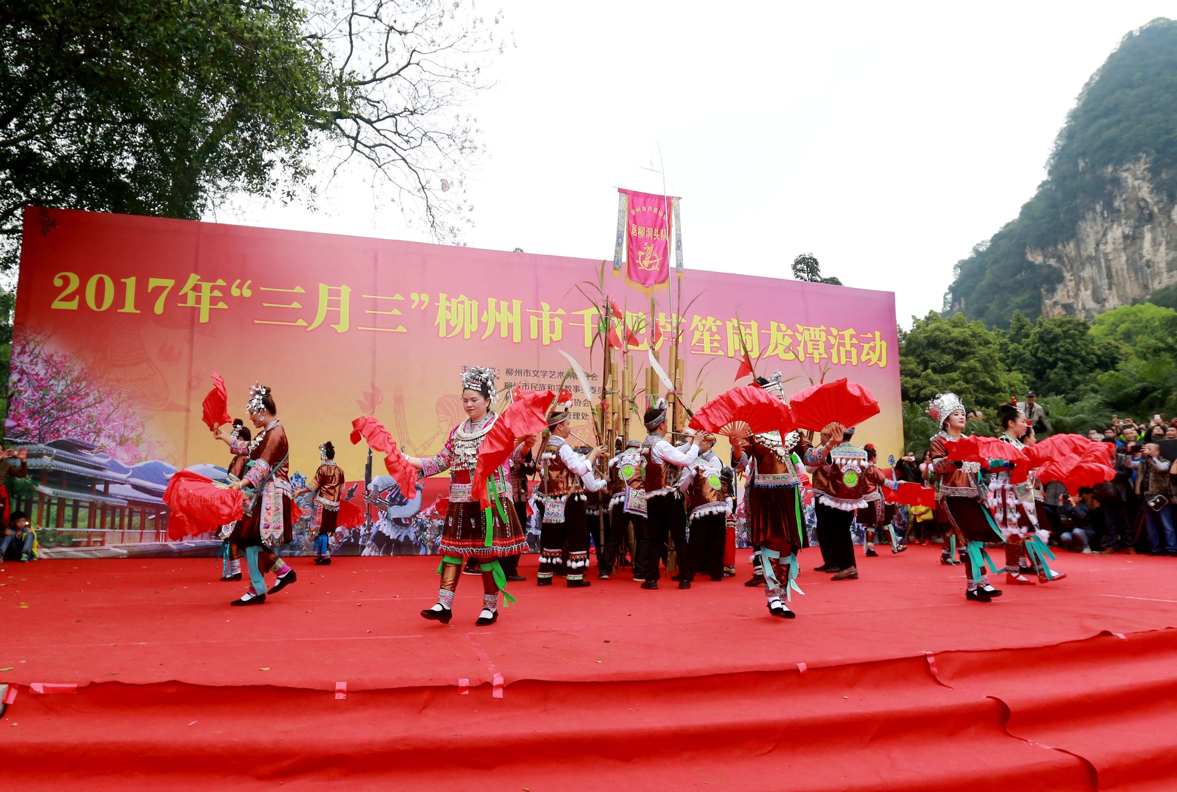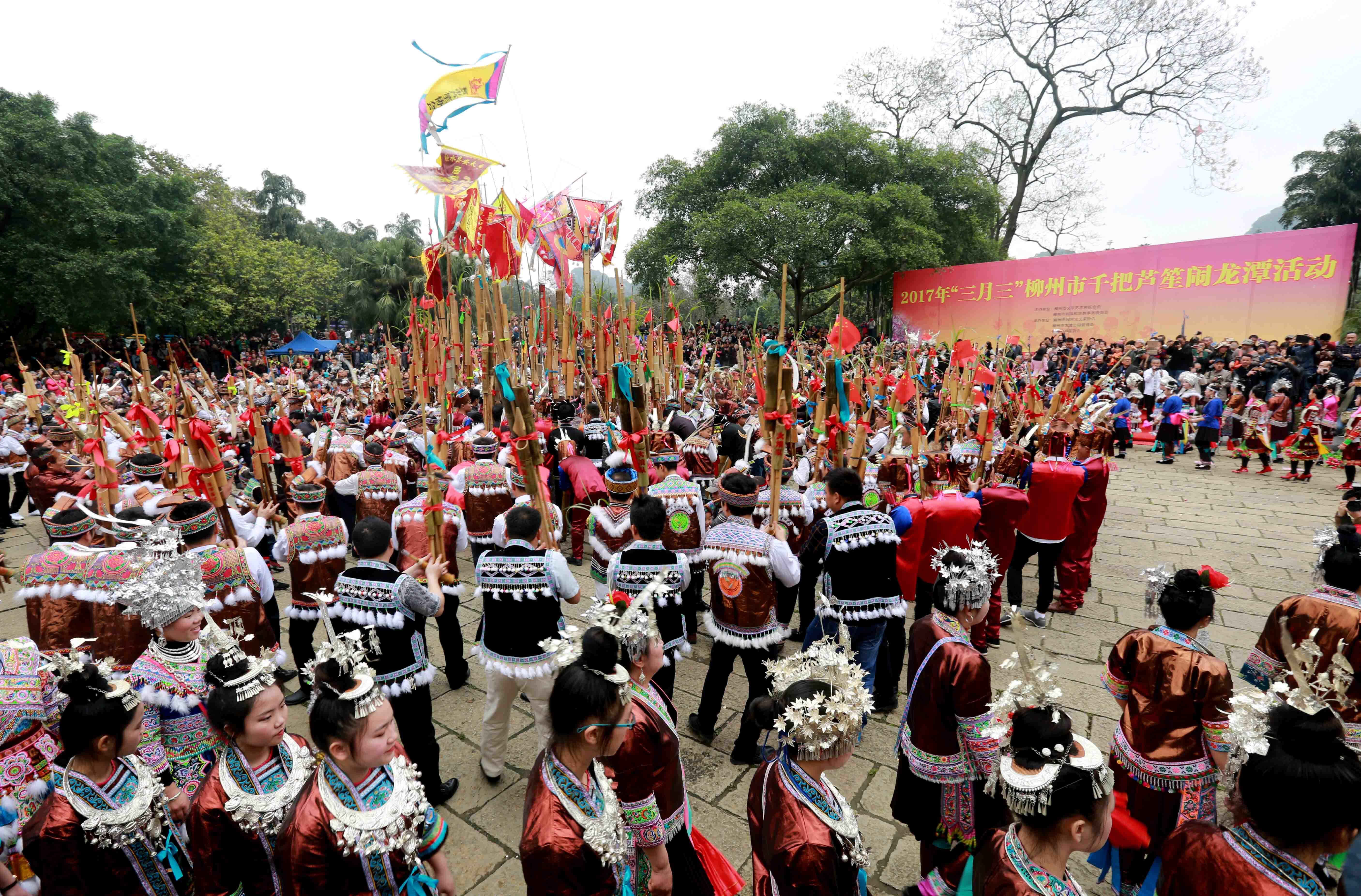 【香港商報網訊】記者歐陽萍、唐琳通訊員覃慶和報道:3月30日,正值廣西農曆三月初三,柳州市舉辦 “紫荊花城 醉美柳州”之“千把蘆笙鬧龍潭”活動,15支侗族、苗族、瑤族共1000千餘人的蘆笙隊上演蘆笙合奏、蘆笙團結互動舞、大型蘆笙踩堂舞、蘆笙坡會式踩堂,共同慶祝“壯族三月三”民俗節日,吸引了眾多遊客前來觀看。