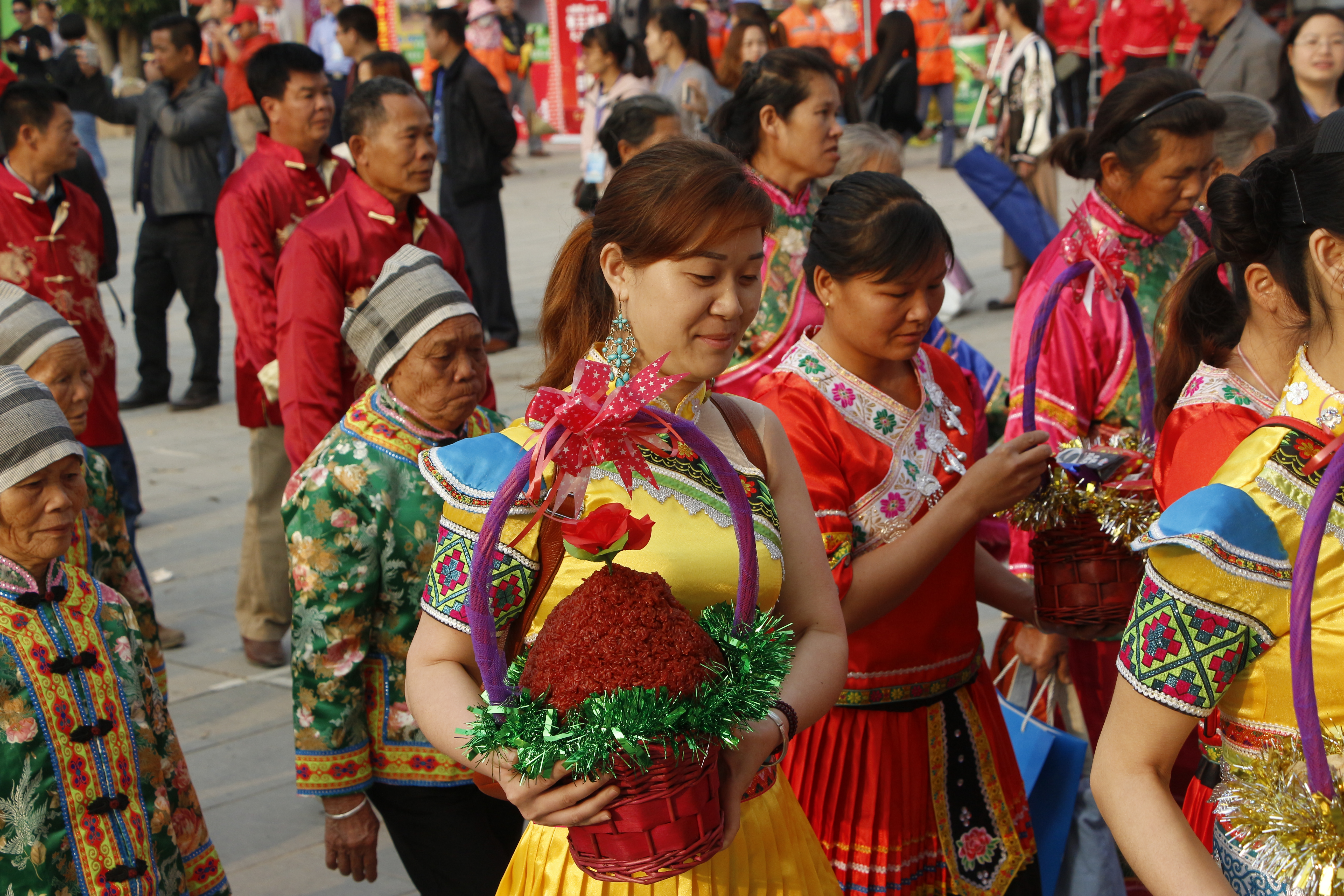 此外,文化旅游節期間的民間體育競技比賽活動,如搶花炮、抬“花轎”比賽、夫妻挑抬西紅柿比賽、圣女池摔跤、斗牛、摩托“拉籮”西紅柿比賽、拋繡球等,這些從群眾日常生產生活中演變而來的節目,帶有濃厚的壯族特色,十分接地氣,群眾參與度高。