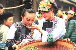 走進黃金村,漫山的茶樹層層疊疊,鋪滿房前屋後。“黃金一號”古茶樹浸潤著苗族文化長盛不衰。沿著黃金村河的兩岸,依山傍水分布著7大古茶園,茶園裏2057株古茶樹堅韌挺拔,見證著千年苗寨一天天的興旺。