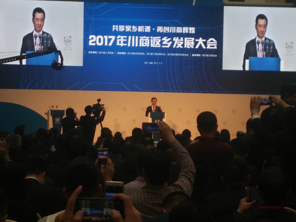 【香港商報網訊】記者郭代勤報道:4月6日,以“共享家鄉機遇•再創川商輝煌”為主題的2017年川商返鄉發展大會在成都召開。四川省委副書記、省長尹力與萬達集團董事長王健林、新希望集團董事長劉永好等知名川商代表齊聚一堂,共話川商發展。