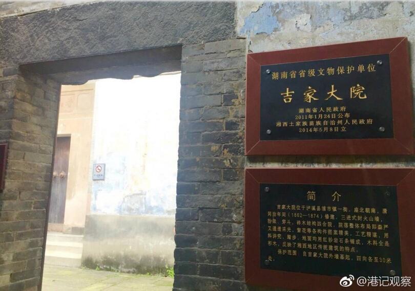 我们再来了解一下这个稀缺的“中国古建筑大观园”。人们通常知道“乔家大院”,却不知道与之齐名的“吉家大院”。《辰州府志》载,明清时期山西一位吉姓商人来到湘西泸溪县浦市,在此经营木材生意,成为当地十二大家族之一,吉家大院就是其家宅。