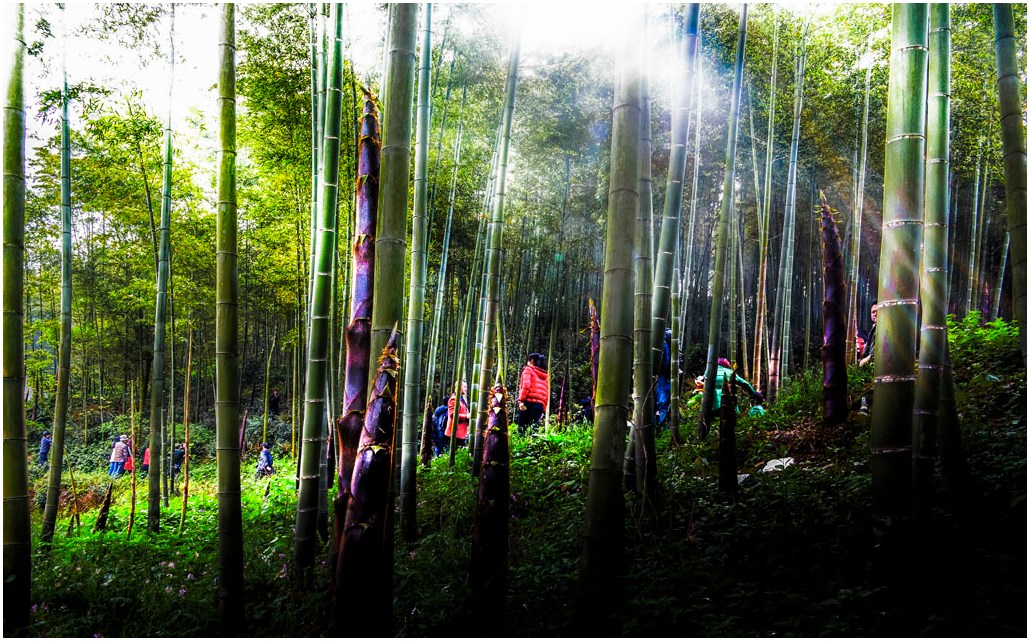 桃江竹林面積115萬畝,立竹2.16億株,是“中國竹子之鄉”“全國竹產業示范縣”。桃江立足資源稟賦,結合精準扶貧發展筍用林,連續舉辦了三屆“竹王”評選活動,對培育出“桃江竹王”的竹農給予10萬元獎勵,獎補1200萬元修建林道2300公里、蓄水灌溉設施800多處,累計低改竹林12萬多畝,建設高標準材用竹林基地10萬畝、筍材兩用林示范基地4萬畝,發展黃金塘、安寧等各類竹業專業合作社52家,入社農戶達5800戶、32000余人,扶持發展家庭農場、專業大戶123個,發展竹緣林科有限公司、世林公司等竹筍加工企業24家,合作社16家。游客們來到鸕鶿灣竹筍基地,翠竹“一節復一節,千枝攢萬葉”,蟄伏一冬的春筍破土而出。大家紛紛拿上勞動工具,體驗現場挖筍的樂趣。當地竹農萬國新說,該基地創新發展模式,走“基地+農戶+合作社”的路子,制定“一散五統”標準,農戶分散生產,合作社統一供應物資、生產標準、包裝、商標、銷售。既降低了生產風險,又解決了技術不足、銷售困難等問題,生產積極性、市場競爭力大幅提高。鸕鶿灣竹筍基地已吸引了350余戶竹農入社,發展筍用林7000多畝。