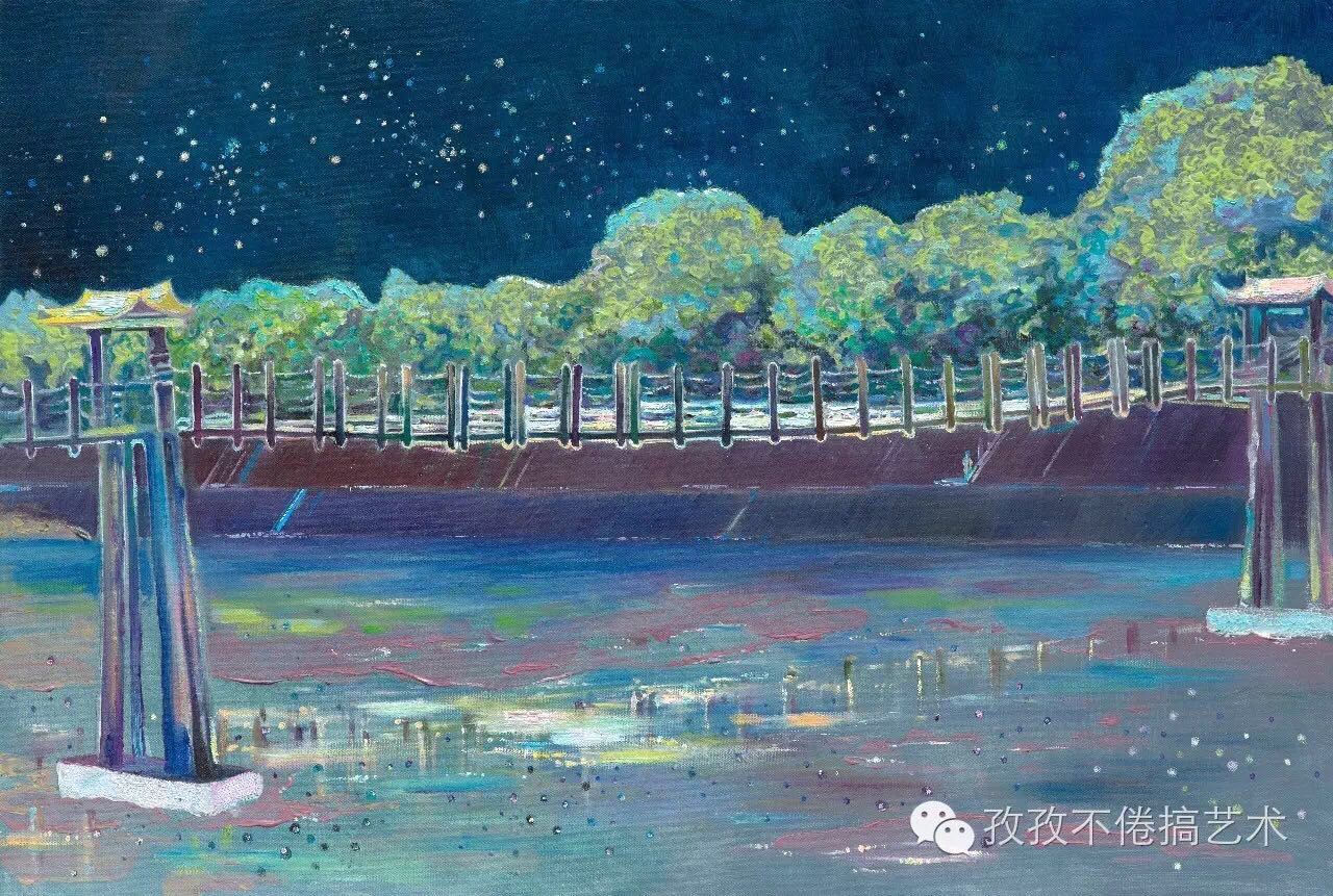 黃江孜告訴記者,入選“絲路與世界文明”第七屆中國北京國際美術雙年展的作品《應許之地》,“應許之地”這個詞來自于圣經,是上帝許諾給以色列人的祖先,流淌著牛奶與蜜的幻地。我的應許之地就在畫里,是遠方也是我心里的風。其實全部有跡可循,都是我走過的真實地點,但它們染上了回憶與想象的氣息,模糊了現實的晝夜和客觀的色彩,重新充滿未知的神秘。我希望它們能帶我去遇見最真實的自己,也能使觀者同我一樣,在畫面中與現實暫時抽離出走,尋找自己的“Promised Land”。