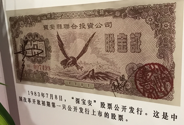 “1982年,新中国每一家股份制企业--宝安县联合投资公司在深圳成立。1983年7月8日,这家公司以公开发行股票的方式向全国招股,‘深宝安’无疑成为新中国第一只公开发行的股票。”禹国刚向笔者介绍,“1983年7月25日,宝安县联合投资公司在《深圳特区报》刊登公开招股公告:欢迎省内外国营集体单位、农村社队和个人(包括华侨、港澳同胞)投资入股,每股人民币10元。” 禹国刚边说边展示当年当日的《深圳特区报》,以及“深宝安”和“小飞乐”的股票样本。