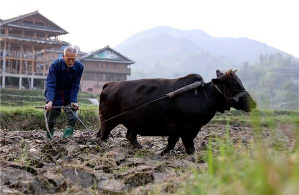 【香港商报网讯】记者欧阳萍 通讯员吴练勋报道:4月13日,广西三江侗族自治县林溪镇高秀村的村民在田间劳作。时下正值春耕农忙时节,位于桂北山区的三江侗族自治县农民忙于整理耕地,硬化田埂,修筑水利,田间地头辛勤劳作的人们与木楼瓦屋、多彩田园相映成趣,构成一幅幅特色的乡村春耕画卷。