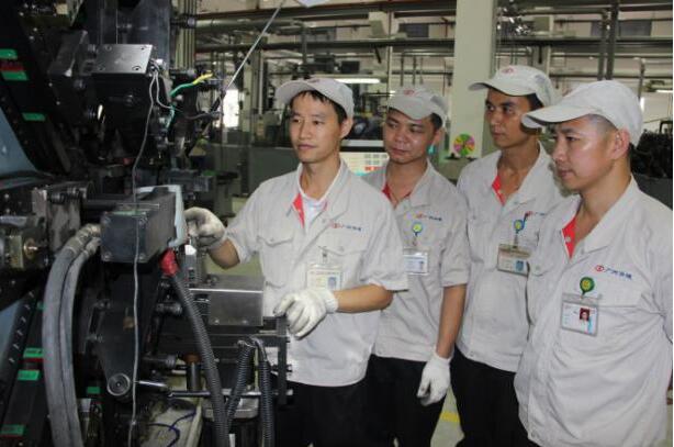 圖為廣州華德汽車彈簧有限公司技術主管、省勞模張春新在車間進行現場技術指導。新華網發