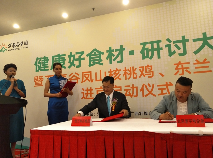 【香港商报网讯】日前,第六届世界健康产业大会在北京举行。大会期间启动2017年广西特产行销全国河池市一市一品区外市场推广活动,北京20多家老字号餐饮企业主动与凤山签约,订购该县的核桃鸡。今后凤山的核桃鸡将通过冷链运输、产品深加工等渠道,直供北京市民的餐桌。