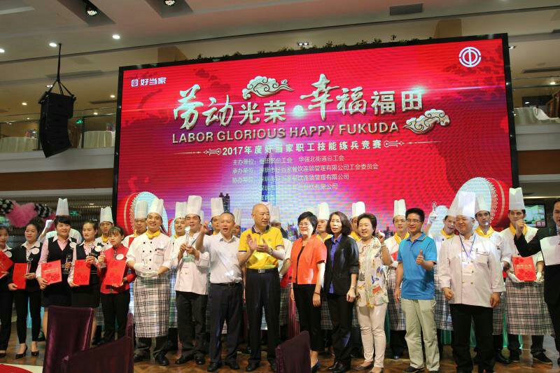 4月19日下午,由深圳福田區總工會、共青團福田區委員會、福田區婦女聯合會、福田區人力資源局等單位組織,華強北街道總工會主辦,深圳市好當家餐飲連鎖管理有限公司工會委員會承辦的“勞動光榮·幸福福田”華強北餐飲服務類職工技能比武活動在好當家喜薈門店隆重舉行。福田區人大副主任、區總工會主席章海蓉,華強北街道党工委書記、辦事處主任蔡轉彎,華強北街道黨工委副書記、紀工委書記、街道總工會主席劉仁根等嘉賓應邀出席。