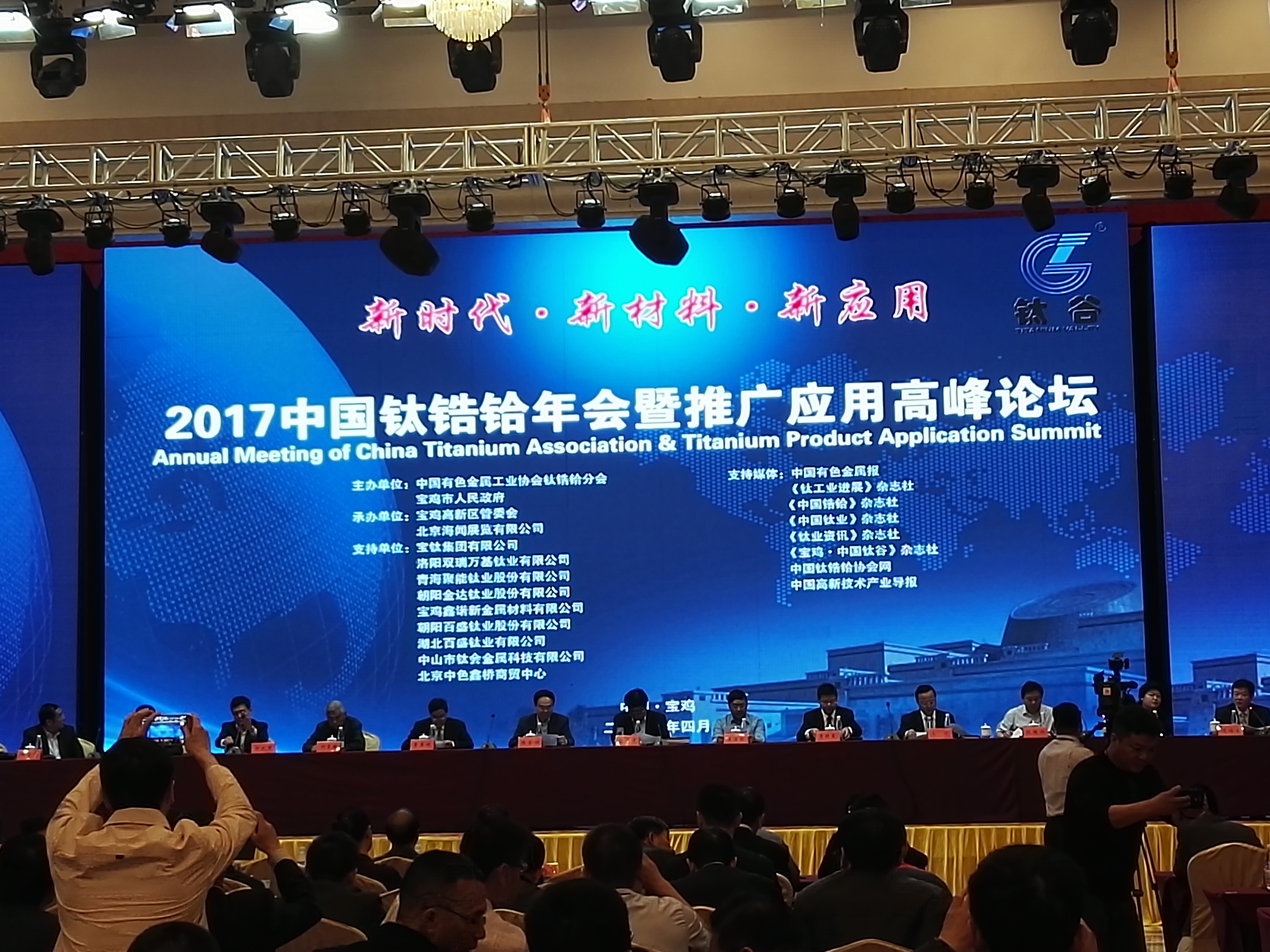 【香港商報網訊】記者傅博、王寶雲報道: 4月24日,由中國有色金屬工業協會鈦鋯鉿分會、寶雞市人民政府共同主辦的2017中國鈦鋯鉿年會暨鈦產業高峰論壇在“中國鈦穀”陝西省寶雞市舉行。中國鈦產業領域專家、鈦產品企業共聚一堂、深入交流,探討鈦產業發展趨勢,凝聚行業共識,促進我國鈦產業轉型升級。