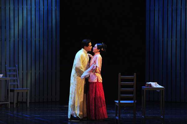 此次上演的《金鎖記》,是張愛玲最著名的作品之一,由王安憶編劇、許鞍華導演、焦媛主演。這部作品讓看過很多版本《金鎖記》的觀眾頗為驚豔,甚至被很多人認為是最佳版本。尤其是有“香港舞台劇女王”之稱的焦媛領銜主演,除了焦媛出眾的台詞功夫,她的形體塑造更是精彩。為了讓焦媛捕捉到吸大煙的中年曹七巧內心的扭曲,許鞍華讓焦媛穿“小鞋”、“裹腳”來排練,走路搖晃,腳痛鑽心,最後有了曹七巧聳肩抖手的肢體語言。這個敢愛敢恨卻被壓抑的女性,最終扭曲到歇斯底裏的人生過程,被焦媛演得可謂淋漓盡致,令滬上觀眾大飽眼福。
