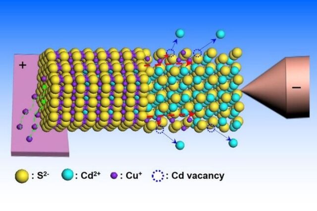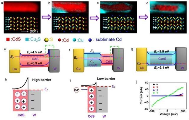 【香港商報網訊】通訊員翟夢傑、記者杜林、宋璟報道:近日,東南大學孫立濤教授的研究團隊在國際上首次提出電驅動的陽離子交換方法,並成功實現對單一納米結構的選擇性制備與修飾。該研究工作擺脫了傳統陽離子交換在選擇性制備方面的限制,讓納米尺度下材料和器件結構的加工與制備更精准、更可控。相關研究成果以“Electrically driven cation exchange for in situ fabrication of individual nanostructures”(電驅動的陽離子交換方法用於單一納米結構的原位制備)為題於4月12日在線發表在Nature Communications上。