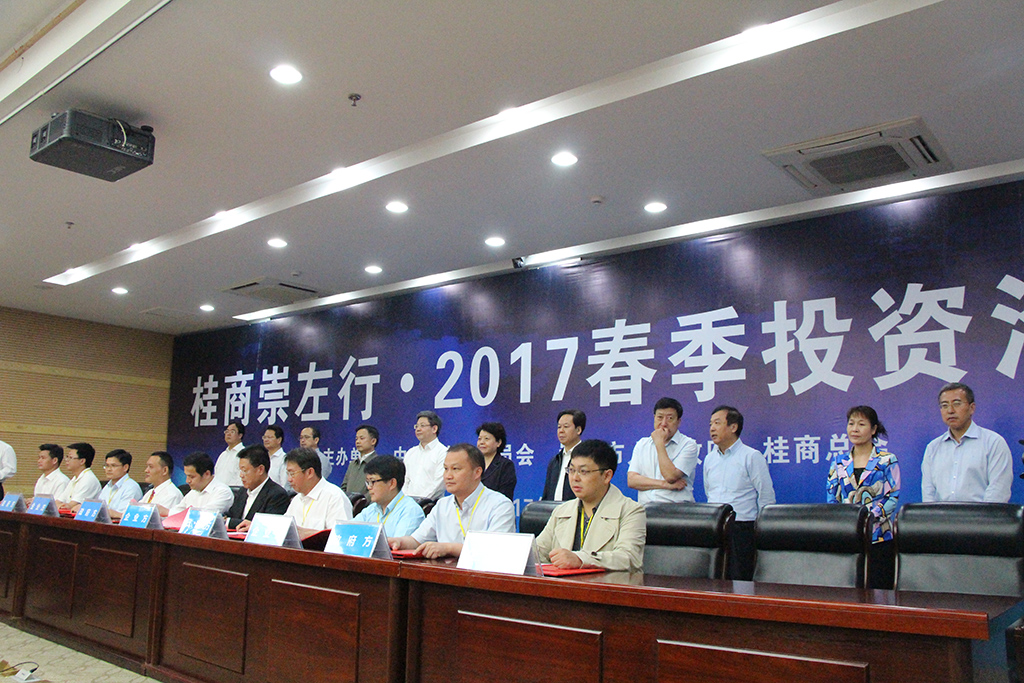 【香港商報網訊】記者歐陽萍、李依玲報道:4月26日—28日,“桂商崇左行2017春季投資洽談會”在廣西崇左市舉行。洽談會上,崇左市人民政府與桂商總會簽訂戰略合作框架協議,集中簽約了涵蓋制造業、農林牧漁業、旅遊業、物流業等領域的11個項目,總投資額17.92億元。