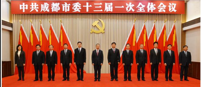 【香港商报网讯】记者 付莉莉 报道: 4月28日,成都市第十三次党代会胜利闭幕。在中共成都市委十三届一次全会上当选的市委书记范锐平,市委副书记罗强、朱志宏,市委常委胡元坤、吴凯、王波、谢瑞武、王川红、廖仁松、苟正礼、田蓉(女)、左正首次集体亮相。