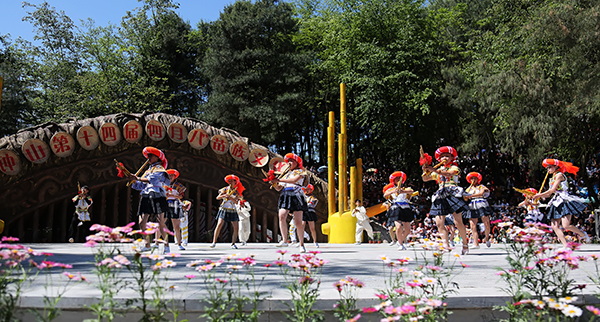 當日9點,月照社區馬壩村沙溝林場苗族同胞吹起蘆笙載歌載舞,苗家姑娘唱起歡快的敬酒歌,手捧香醇的米酒敬奉給遠道而來的客人。苗家姑娘用柔美的舞姿、甜美的歌聲抒發著對各族同胞的友愛之情。主會場內彩綢飄揚,鼓聲激蕩,遠近趕來的數萬名群眾一同分享著這一文化盛宴。
