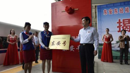 據了解,“東安號”動車組運行路線每天開行兩對,一對為東安東經桂林至廣州南D2987/6/7次和D2966次,經由衡柳、貴廣線運行,從東安東站始發,途經興安北、桂林、恭城、賀州等旅遊城市高鐵車站;另一對是東安東—南寧東D8495次和D8496次,經由衡柳、柳南線運行。