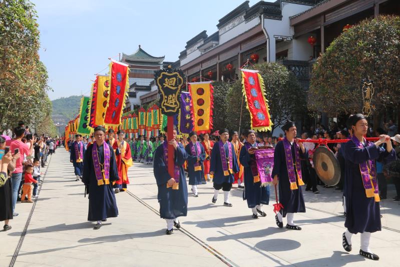 【香港商報網訊】記者何佳俊報道:近千人的巡遊隊伍從武當山山門出發,途經太和路,永樂路,武當路,玉虛街,直至玉虛宮,第四屆國際道教論壇祈福法會在玉虛宮舉行。本次祈福法會的主題為“護國佑民 平安吉祥”,來自近三十個國家和地區的道教協會代表、法師團人員以及各道教協會人員千餘人參加祈福活動。