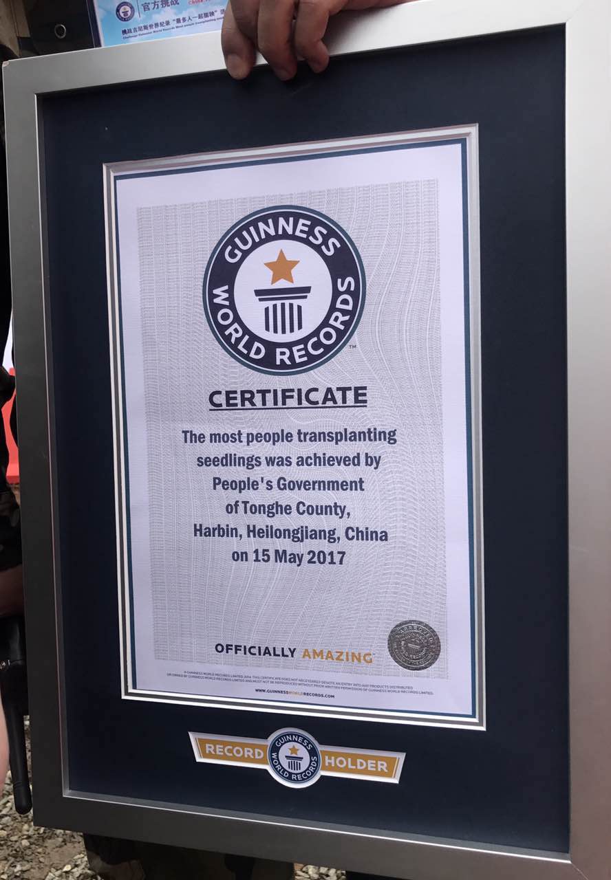 【香港商報網訊】5 月 15 日,哈爾濱市通河縣成功舉辦了 " 挑戰吉尼斯世界紀錄‘最多人一起插秧’ " 活動。通河縣派出8 個鄉鎮,2017 人參加了此次挑戰,最終以13分23秒完成挑戰,並在吉尼斯世界紀錄官方紀錄官程東先生的現場認證,確定成績有效,成功打破吉尼斯世界紀錄。