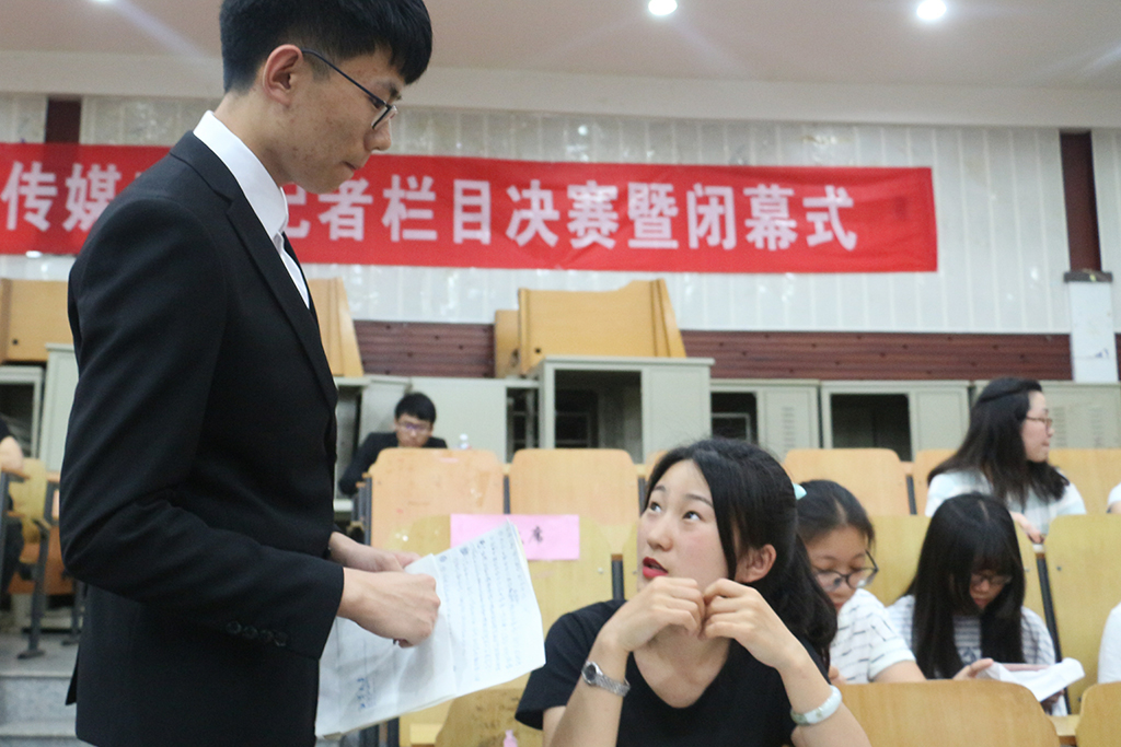 “在我看來,記者是一份很神聖、很高大上的職業,這個世界該有一些人去幫我們發現事實,記者應該是社會的良心”,選手石彥強說。據悉,該場比賽分為現場報道和即興評論兩個環節,第一環節大學生們分組根據現場給定的主題分組報道、現場采訪並快速成稿,以展現其紮實的基本功。在隨後進行的第二環節,選手們將進行即興評論,用90後視角來觀察時下的社會熱點。同學們還特意邀請了省內諸多傳媒業“大咖”現場助陣,在比賽之餘給予大學生們向更專業的指導和就業培訓。