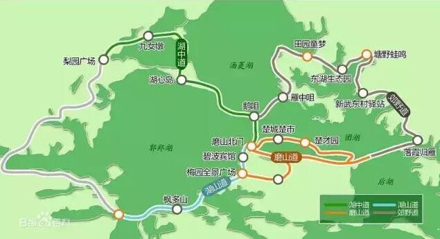 山水人文相輝映,萬物靜觀皆自得。漫步湖中道,可觀大湖氣魄;閑坐郊野道,可享自然野趣;細賞磨山道,可品楚風漢韻;暢游湖山道,可賞湖光山色。