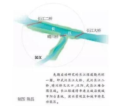 先期啟動研究的長江綠道繞內環一圈,即武漢長江大橋、武漢長江二橋、晴川橋及漢口、漢陽、武昌江灘合圍區域。長江綠道將串連主城沿線城市陽臺系統、濱水景觀區和城市特色功能區。