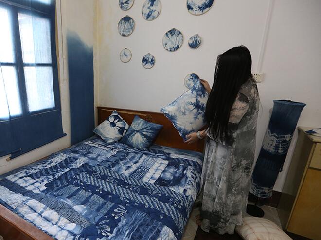 兩人所生產的產品主要有床上四件套、家具裝飾、小飾品等,除了在淘寶店上售賣外,兩人還經常拿著自己的物品去參加創意市集,希望通過這種方式,推廣紮染,讓更多人喜歡上這種傳統手工藝品。而今,來買她們物件的人也越來越多,工作室也逐漸盈利起來。談起對未來的發展,韋碌琪和羅秋娃早已經想好了,她們想著將來能夠在南寧郊區找一塊地,打造一家民宿,民宿內部除了要擺放紮染作品外,其從裏到外的裝潢最好也都是紮染元素,“就是想讓大家一進來,就對紮染有個直觀的了解。”韋碌琪說。