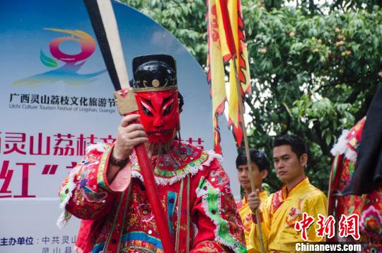 5月18日,在“中國荔枝之鄉”廣西靈山縣表演的中國第四批國家非遺項目——跳嶺頭。“跳嶺頭”是廣西欽州市典型的民俗文化,是古老的一種帶面具的祭祀舞蹈,於2006年被確認為第一批廣西壯族自治區級非物質文化遺產項目,並於2014年底被確認為第四批國家級非物質文化遺產代表性項目,其具有重要的曆史文化價值。