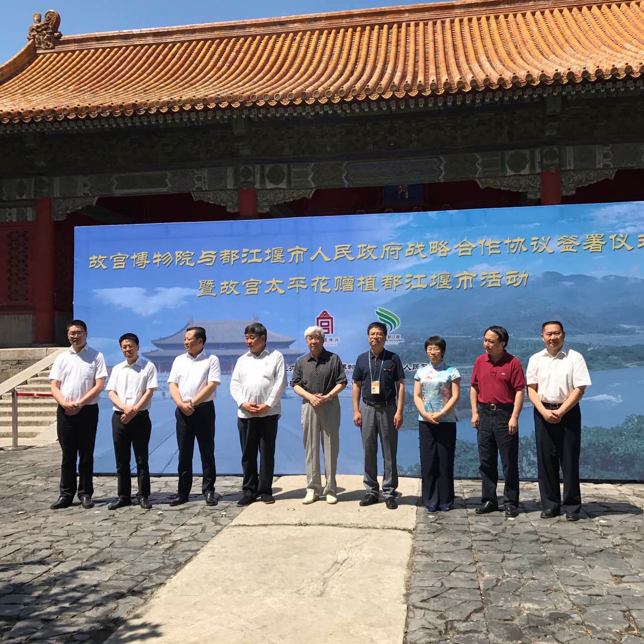 2017年1月18日,都江堰市委常委、宣傳部長唐小峰率廖鵬、羅建、潘永固、徐軍等相關人員前往故宮,向單霽翔介紹了太平花的曆史與現狀,並表達了希望引種太平花,讓其回歸家鄉的願望。單霽翔感念都江堰市多年來對曆史文化保護、挖掘、梳理與弘揚所做的積極工作。欣然同意。