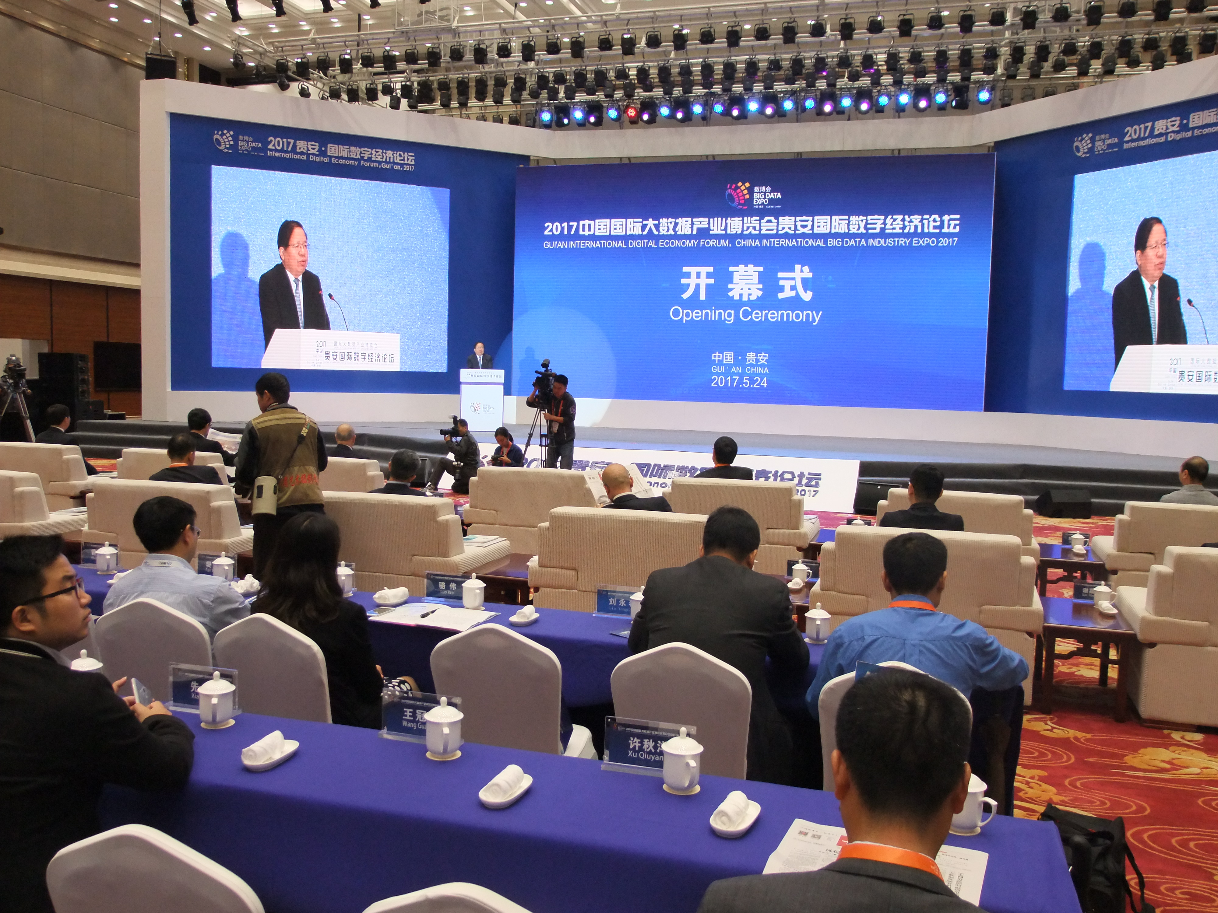 【香港商報網訊】記者張涵坤報道:5月24日上午,2017中國國際大數據產業博覽會貴安國際數字經濟論壇在貴安新區北鬥灣開元酒店開幕,400餘名國內外大數據行業的專家學者、企業代表圍繞“數聚貴安、綠色發展”主題,共話數字經濟發展趨勢,並為貴安大數據集聚發展建言獻策。