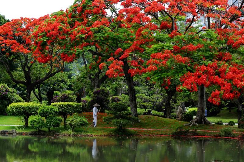 深圳鳳凰樹最為集中地兒在哪?主辦方建議,市民可前往華僑城生態廣場、地鐵華僑城站A出口、深南大道威尼斯睿途酒店段、何香凝美術館附近天橋、東湖公園、觀瀾河等地賞花拍攝。