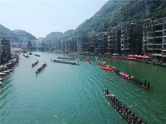 【香港商报网讯】记者许入介、黄庆松报道:29日,以"龙腾古城·和谐镇远"为主题的"2017年'多彩贵州'中国历史文化名城·镇远"㵲水银江杯"第三十四届传统龙舟文化节在镇远古城开幕。