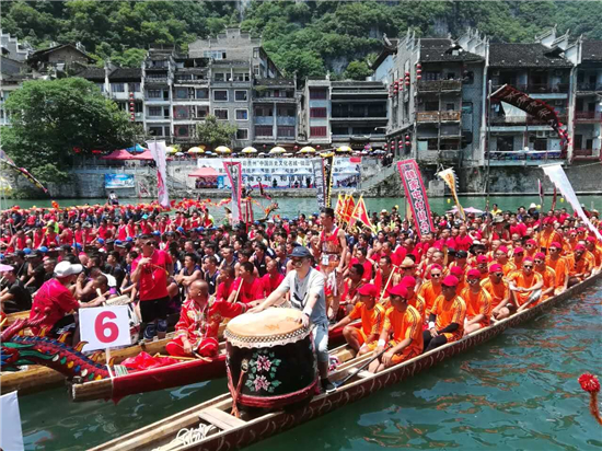"'镇远赛龙舟'是国家级非物质文化遗产,是民族传统体育的精品赛事。赛龙舟的传统文化和体育竞技精神,是我们弥足珍贵的文化瑰宝和精神食粮"。县长茹捷表示,举办端午传统龙舟赛,旨在传承民族文化的同时,搭建一个全方位展示名城镇远丰富文化旅游资源的窗口和平台,以此来推动镇远文化旅游大发展大繁荣,从而不断开创对外开放、交流、合作、共享的新局面。