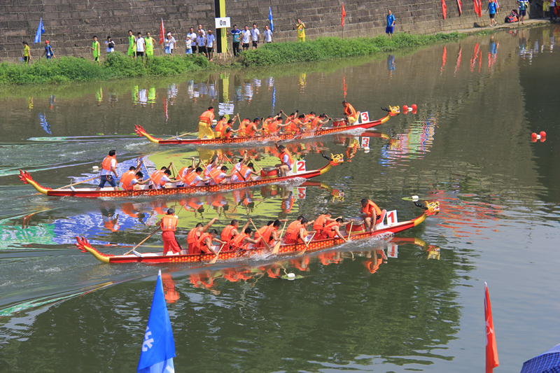 祭祀儀式後,精彩激烈的龍舟競賽正式開始,本次龍舟節邀請了市內其他區縣龍舟賽代表隊同長寧縣本土龍舟賽代表隊同場競技,比賽賽道也由往屆龍舟賽的雙賽道,變為3賽道並行競速;龍舟競賽項目分200米直道競速和500米直道競速。伴隨著震天的鼓聲和號子聲,來自江安、南溪、長寧等區縣的參賽選手們奮力劃槳,劈波劃浪,爭先恐後,一時間,河面上浪花飛濺,龍舟飛馳,為觀眾們獻上了一場精彩紛呈的龍舟盛會。