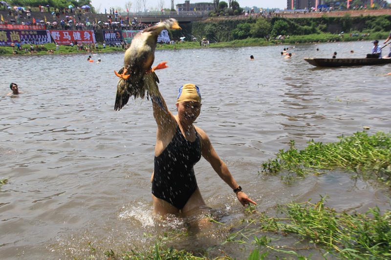 龍舟賽過後還舉行了搶鴨子大賽。工作人員將200只鴨子拋向淯江河中,當地市民及遊客紛紛下河,“爭搶”端午節禮物。岸上觀眾的歡呼聲此起彼伏,氣氛十分熱烈,將整個端午節活動推向了高潮。除了龍舟賽和搶鴨子大賽,現場還舉辦有“包粽子”比賽、攝影大賽和特色產品展示展銷等系列活動,將河中與岸上群眾過節日的喜悅表現的淋漓盡致。
