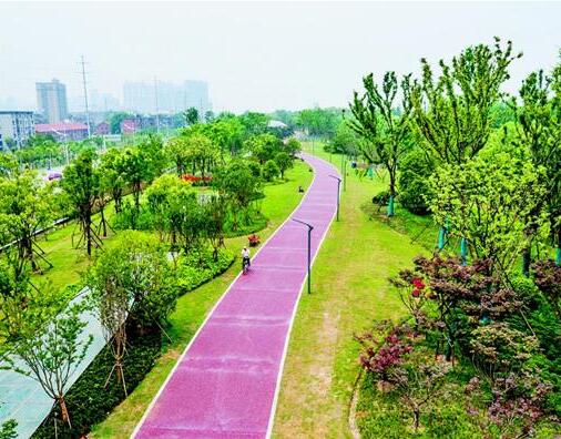 青山江灘二期七成以上的鋪裝采用透水性材料,超九成面積為山水草樹軟鋪裝。雨水落下后,隨處可見的生態草溪和雨水花園,容蓄凈化雨水,不用擔心打濕褲腳。深埋在地下的雨水收集系統能在天晴后為植物“消暑解渴”。