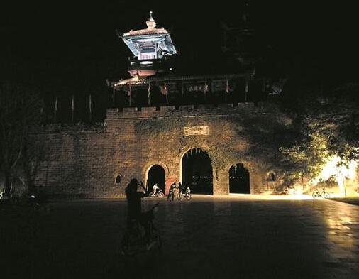 圖為過了楚城城門就一片漆黑 (記者林晶攝)