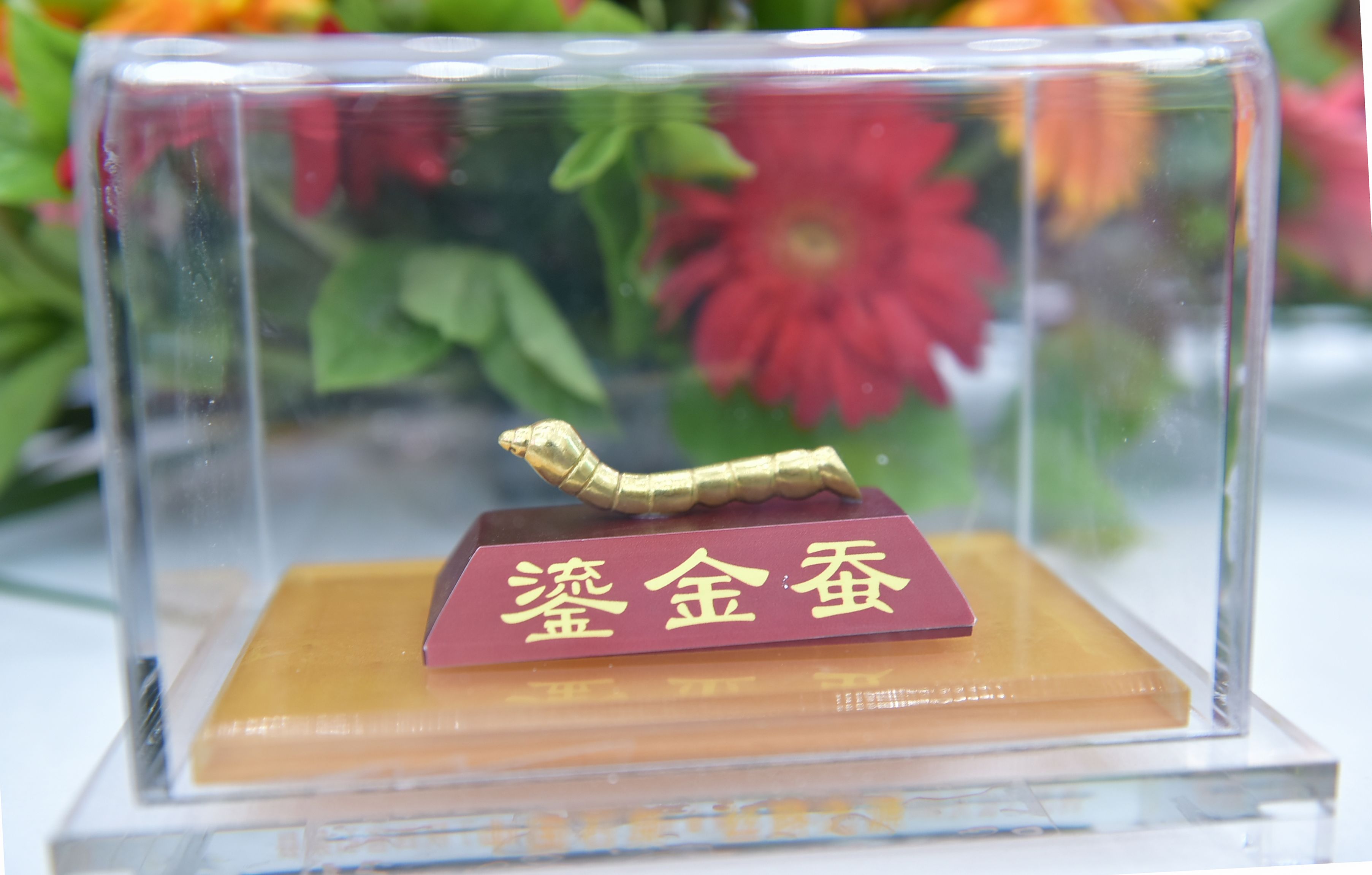 展會現場,石泉縣不僅展示了純天然桑蠶絲服飾、家居系列產品,還擺放了小蠶、蠶繭、蠶絲等實物展品,特別是玲瓏可愛、栩栩如生的鎏金銅蠶工藝制品,更是吸引了大批客商和媒體記者駐足觀看。