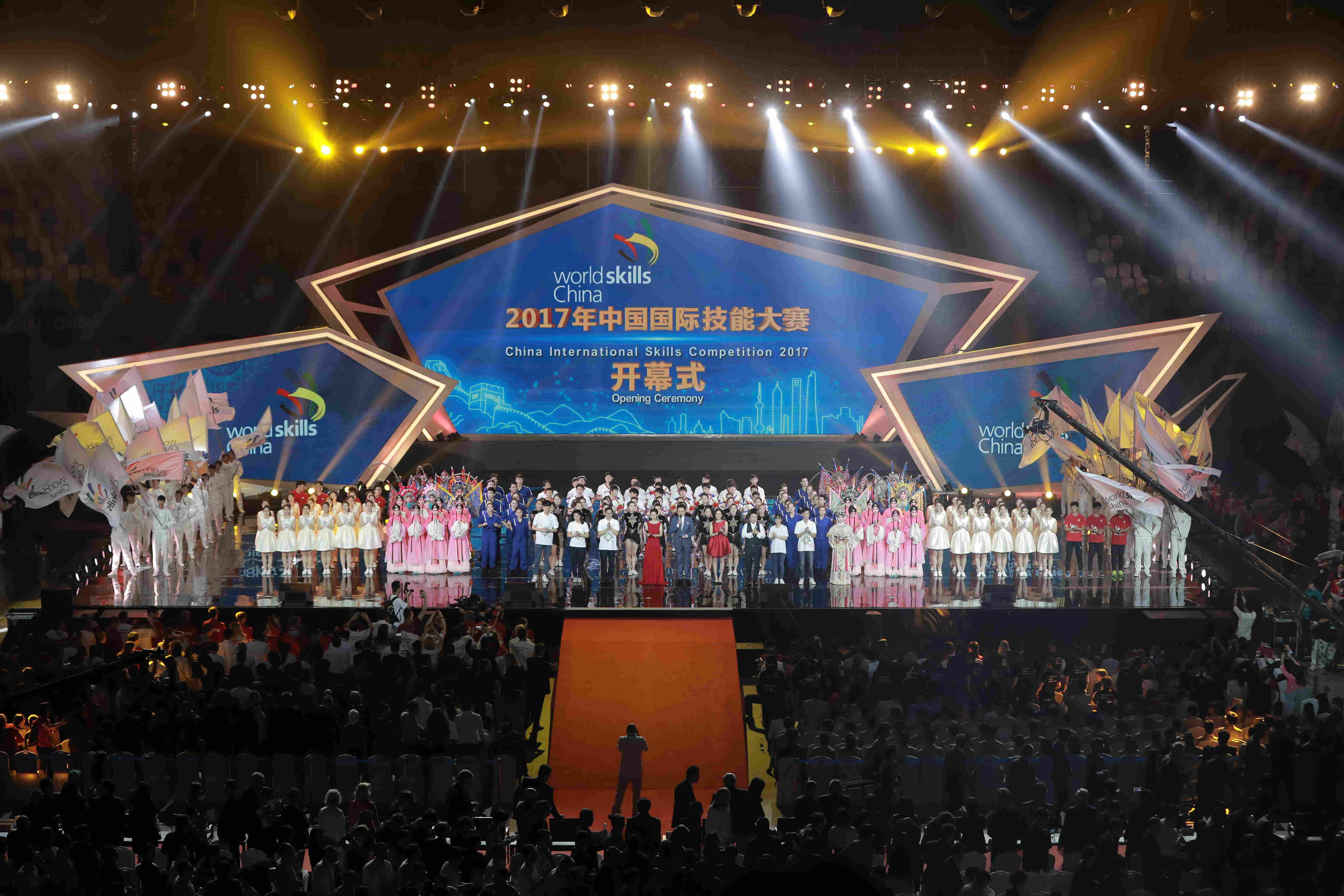 當晚,2017年中國國際技能大賽開幕式在上海東方體育中心舉行。中共中央政治局委員、上海市委書記韓正宣布大賽開幕。