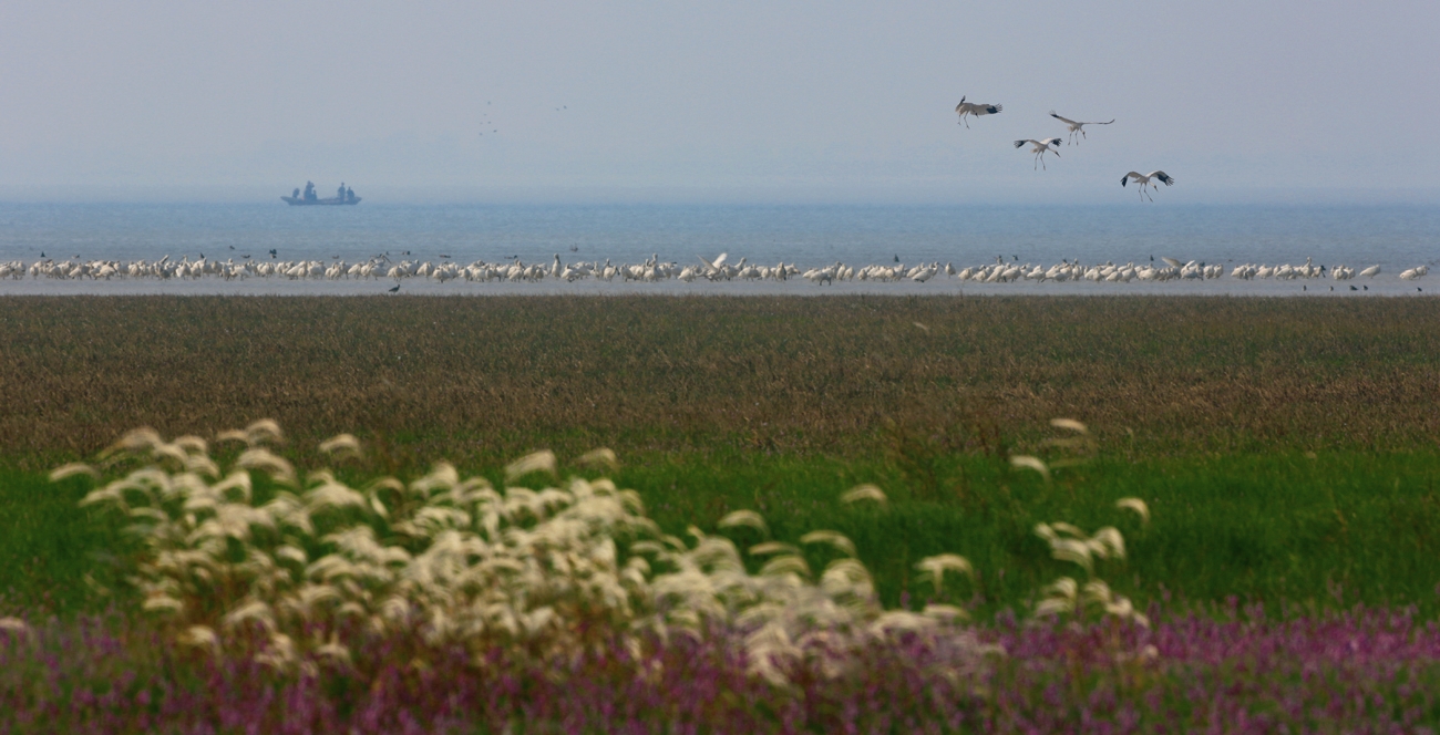 鄱陽湖,中國第一大淡水湖,全世界98%以上的白鶴在此越冬。