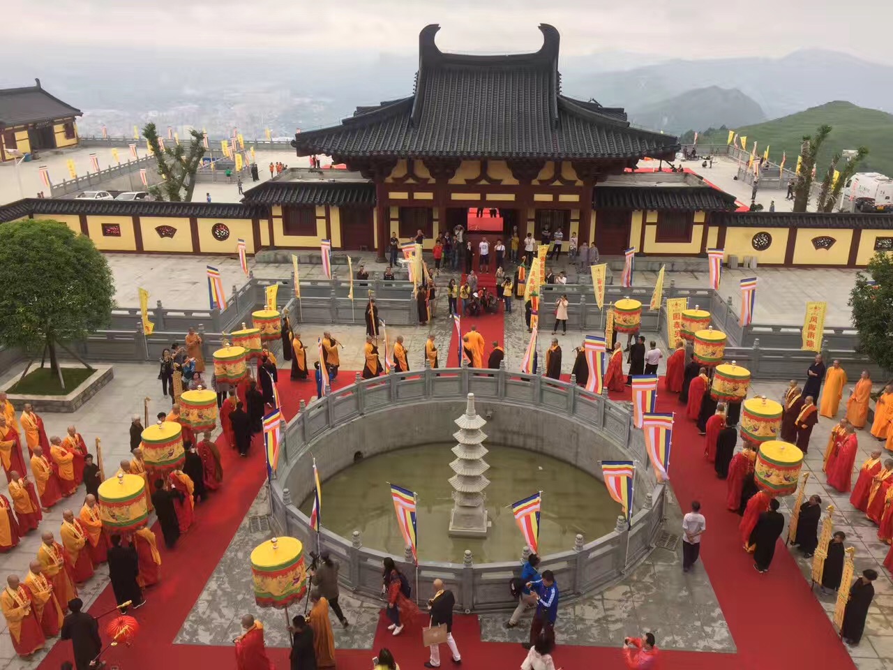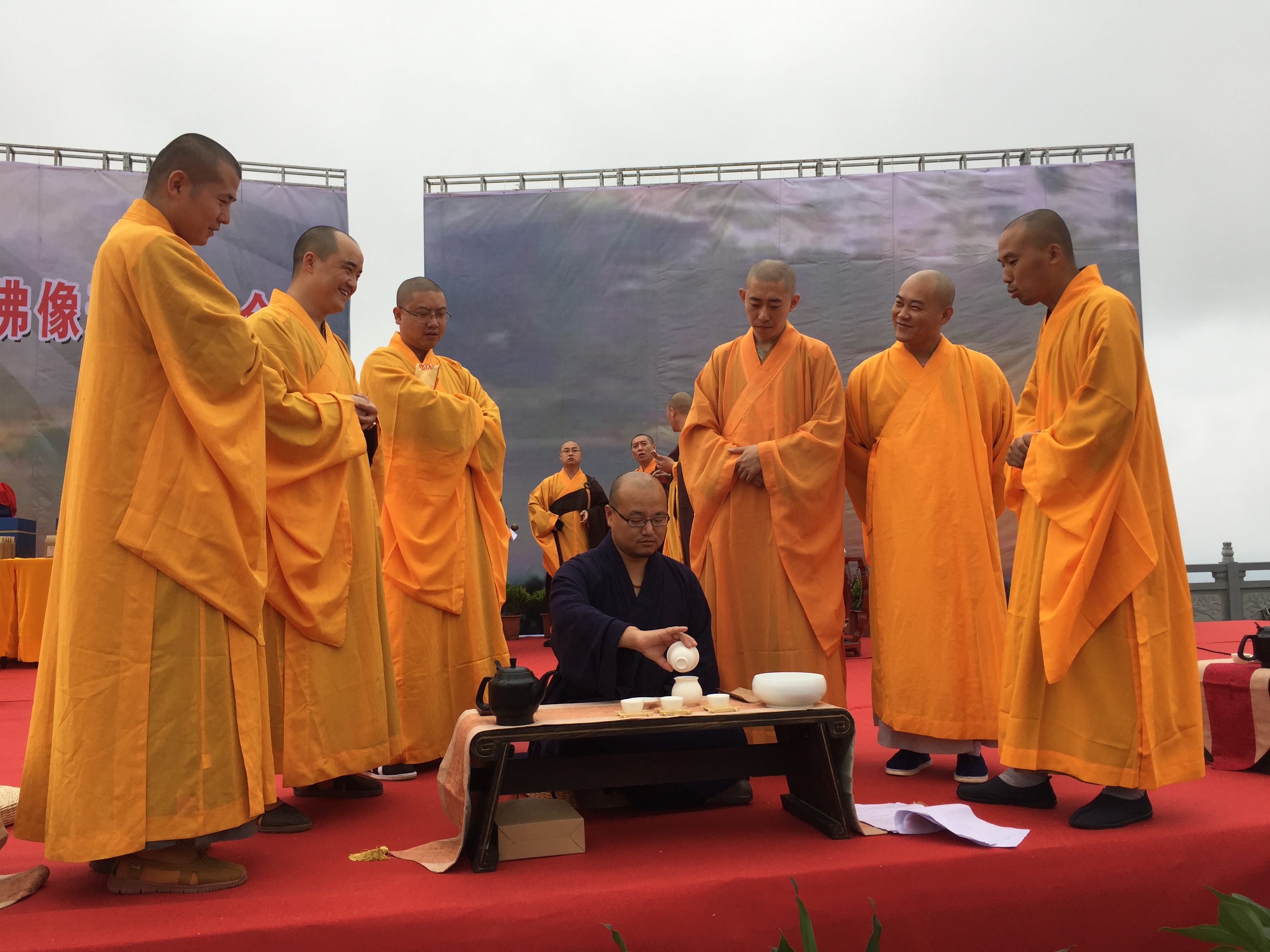 當天儀式上,伴隨祈福祭茶的鑼鳴梵音,儀仗隊迎請大和尚及眾高僧大德,中國佛教協會副會長、陽寶山蓮花寺住持純一大和尚開示,並主法儀式。