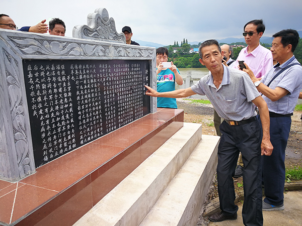 孫開華後人孫培厚(中)在“將軍渡”介紹當年出征台灣的情景