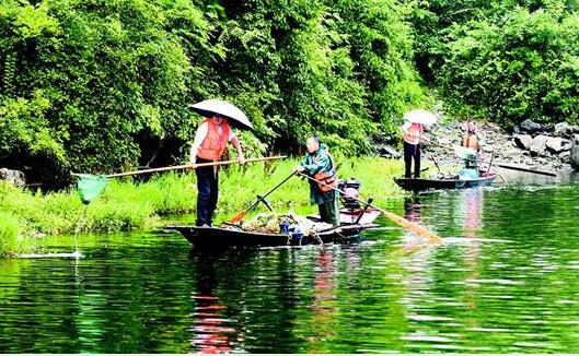 湖北日報訊 昨日,宜都市五眼泉鎮石門村村民冒雨在清江高壩洲水面上清理拆除養魚網箱后漂浮的水面垃圾。宜都市清江流域和漁洋河流域原有漁業網箱面積86.47萬平方米,所有網箱除臨時集中點外正逐一拆除。當地還派出生態修復專班,清理水中及水下垃圾,確保清江和漁洋河水質得到根本改善。