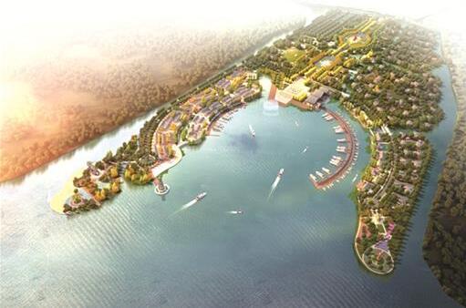 圖為“洪湖岸邊是家鄉”完成投資7.07億元,悅兮半島已建成運營,運動公園和旅游港正穩步推進,計劃明年5月投入運營。